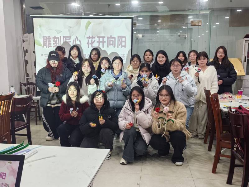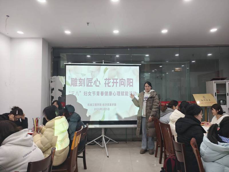 春风送暖,巾帼绽芳。为迎接第116个“三八”国际劳动妇女节,展现新时代女性风采,关注青年学生尤其是转专业女生的专业融入和青春健康,机械学院与经贸学院于3月5日晚在勤行“一站式”学生社区联合举办了“雕刻匠心 花开向阳”三八妇女节青春健康心理赋能活动,两院20余名女生齐聚一堂,以手作疗愈心灵,用匠心致敬芳华。
