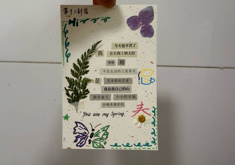 讲解结束后,同学们迅速投入创作,大家围坐在一起,认真挑选心仪的文字,小心翼翼地裁剪、粘贴,时不时互相交流想法、分享思路。李畅同学挑选了“奋斗”“成长”等词语,精心搭配排版,她感慨道:“平时学习节奏比较快,拼贴诗创作的过程特别治愈,把零散的文字拼成属于自己的励志诗句,不仅缓解了压力,也让我更加明确了青春该有的模样,学会在平凡中寻找力量。”作品完成后,同学们展示自己的拼贴诗,分享创作思路和心中的感悟,现场氛围轻松热烈。