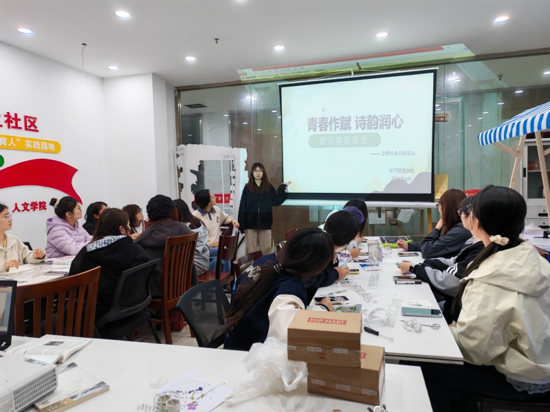 为传递励志力量,舒缓学生心境、激发创意灵感,近日,经贸学院在勤行社区开展“励志青春”主题拼贴诗会,吸引了众多同学参与,学院资心部部长林悦主持活动,带领大家沉浸式感受青春与创意的碰撞。